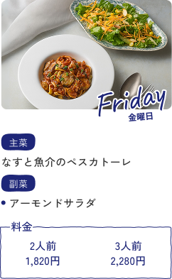いつもとは少し違う味や食材を楽しめる、ちょっと冒険メニューのコースです。トレンド料理も多くて『おうちで外食気分!』と言われることがあります。