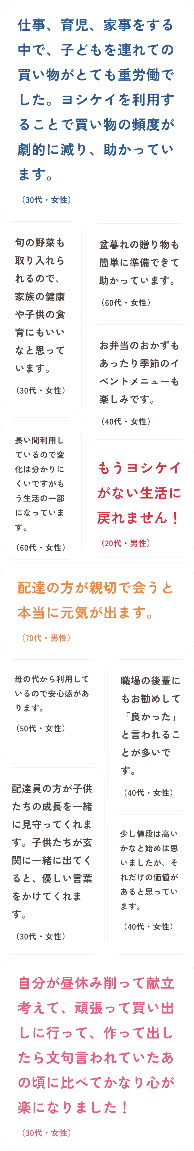 「献立を考えなくていい」の一言に惹かれて始めました。 (30代・女性)
